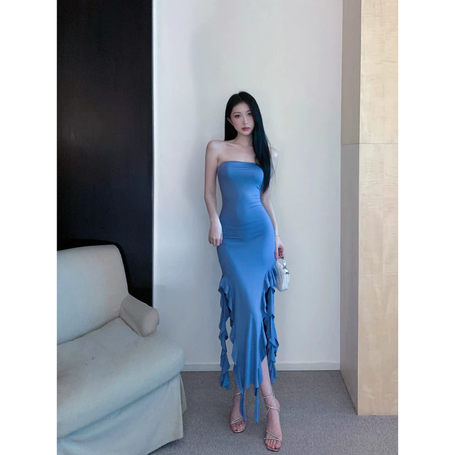 กระโปรงยาวผู้หญิงเซ็กซี่เหมาะสำหรับงานปาร์ตี้เดรสเกาหลี